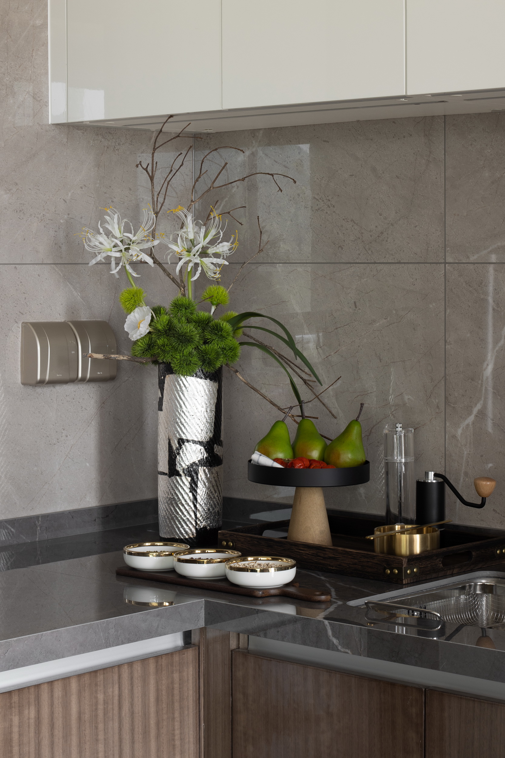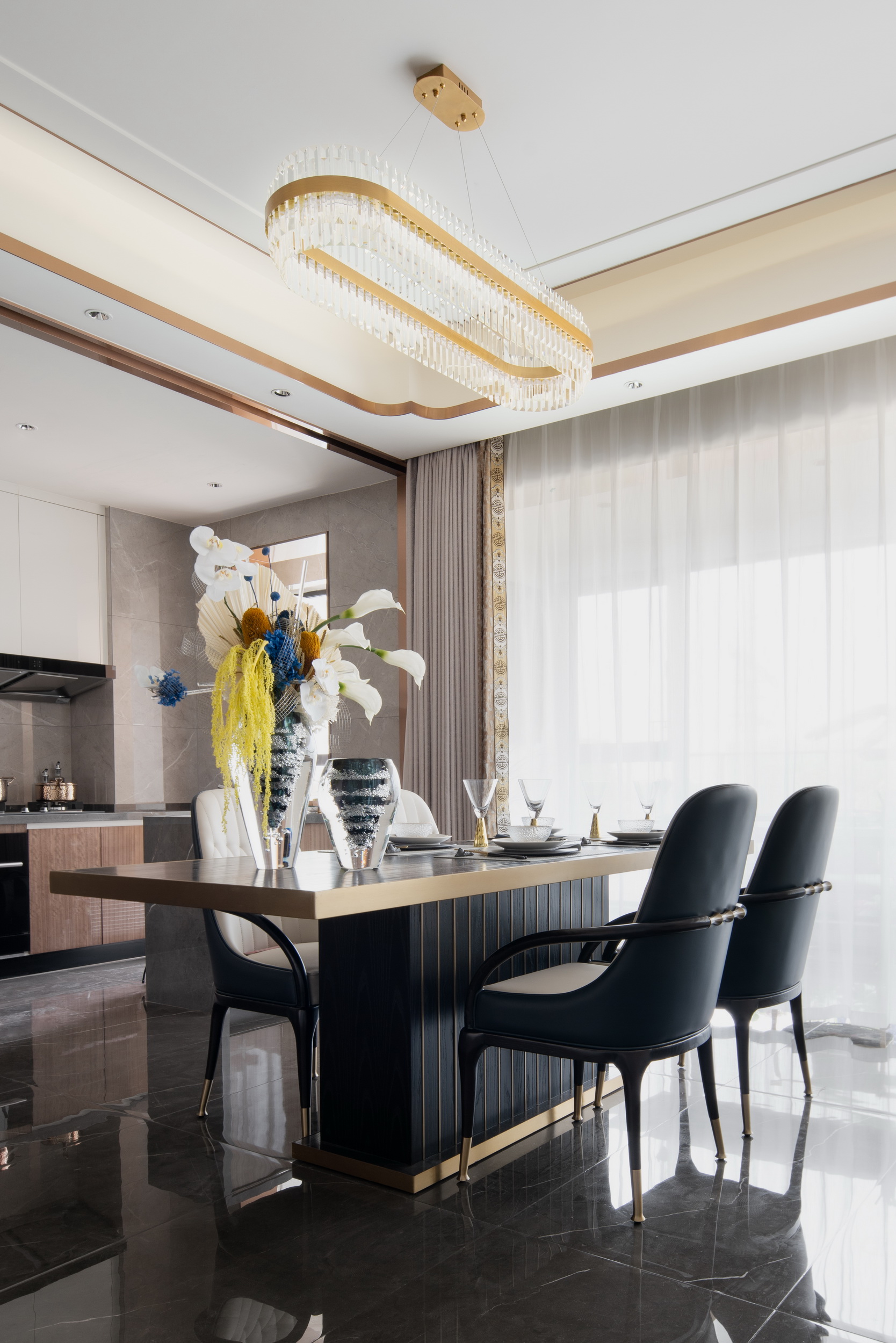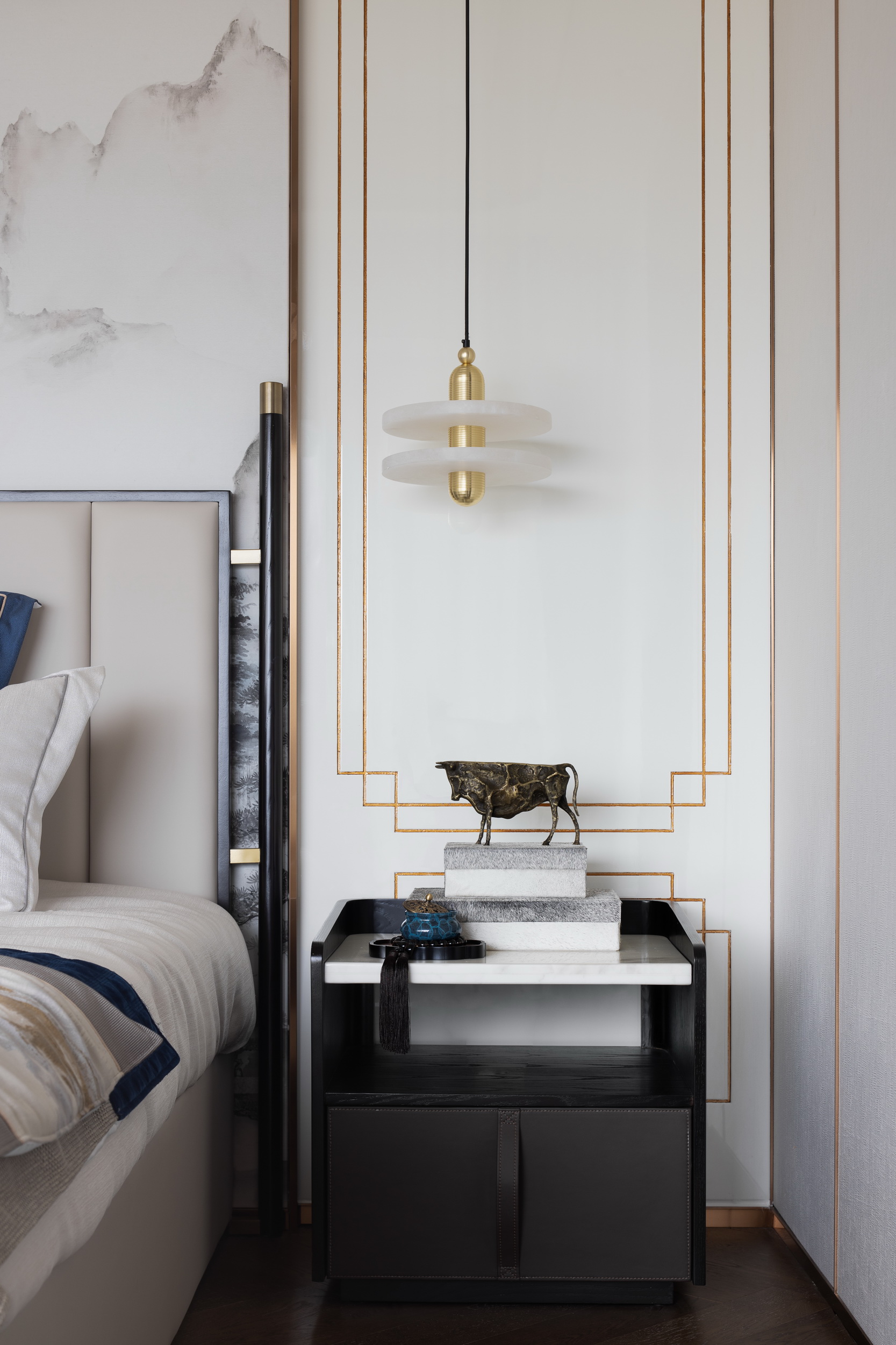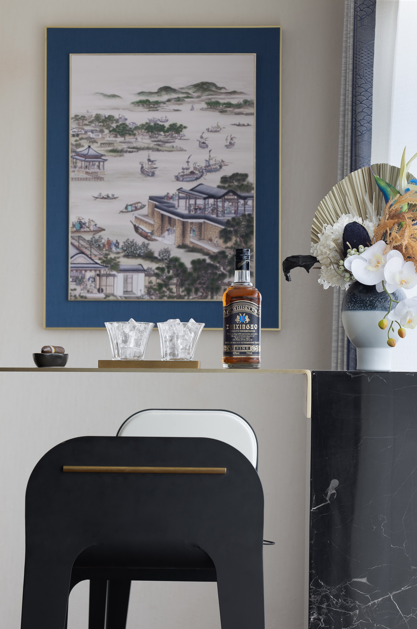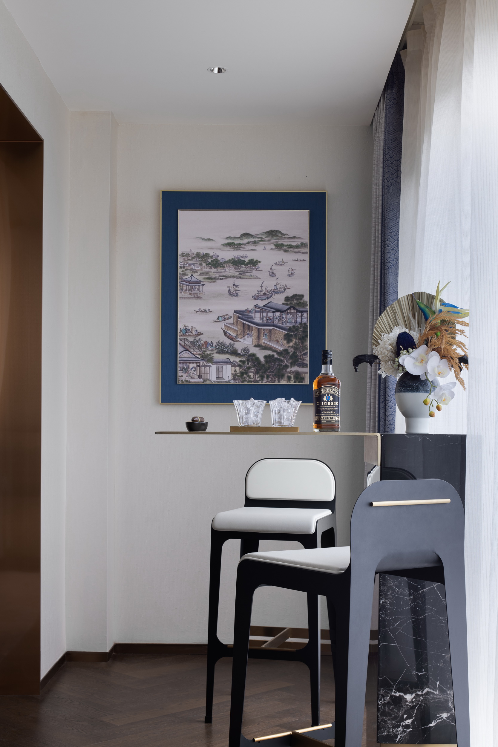 當(dāng)東方美學(xué)邂逅西式構(gòu)造,引山水自然入室內(nèi),打造悅心之居。本案為躍層式住宅,一層布置為客餐廳、書房、兒童房以及客臥,二層則是更為私密獨立的主臥。作為對生活的致敬,伊派設(shè)計希望能借此設(shè)計喚起對家的歸屬感,不僅打造身之居所,更打造心之屬地。